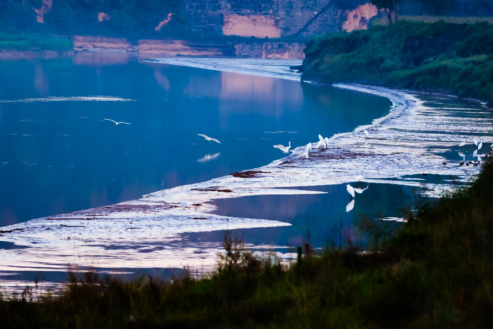 10月12日, 长庆油田第二采油厂两名“河道长”在马莲河畔进行日常管道巡护时,惊喜发现一群白鹭,它们或三五成群,悠闲地嬉戏游弋,身姿优雅;或引吭高歌,清亮的鸣声划破天际;或奋力振翅高飞,冲向云霄,尽显矫健之态;或静静依水而眠,享受片刻宁静。它们的一举一动,都为这片水域增添了无尽的灵动与蓬勃生机。